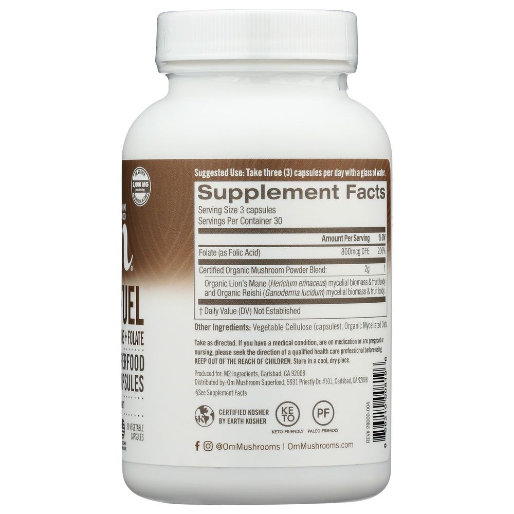 OM ORGANIC MUSHROOM NUTRITION: Brain Fuel Lions Mane Folate, 90 cp